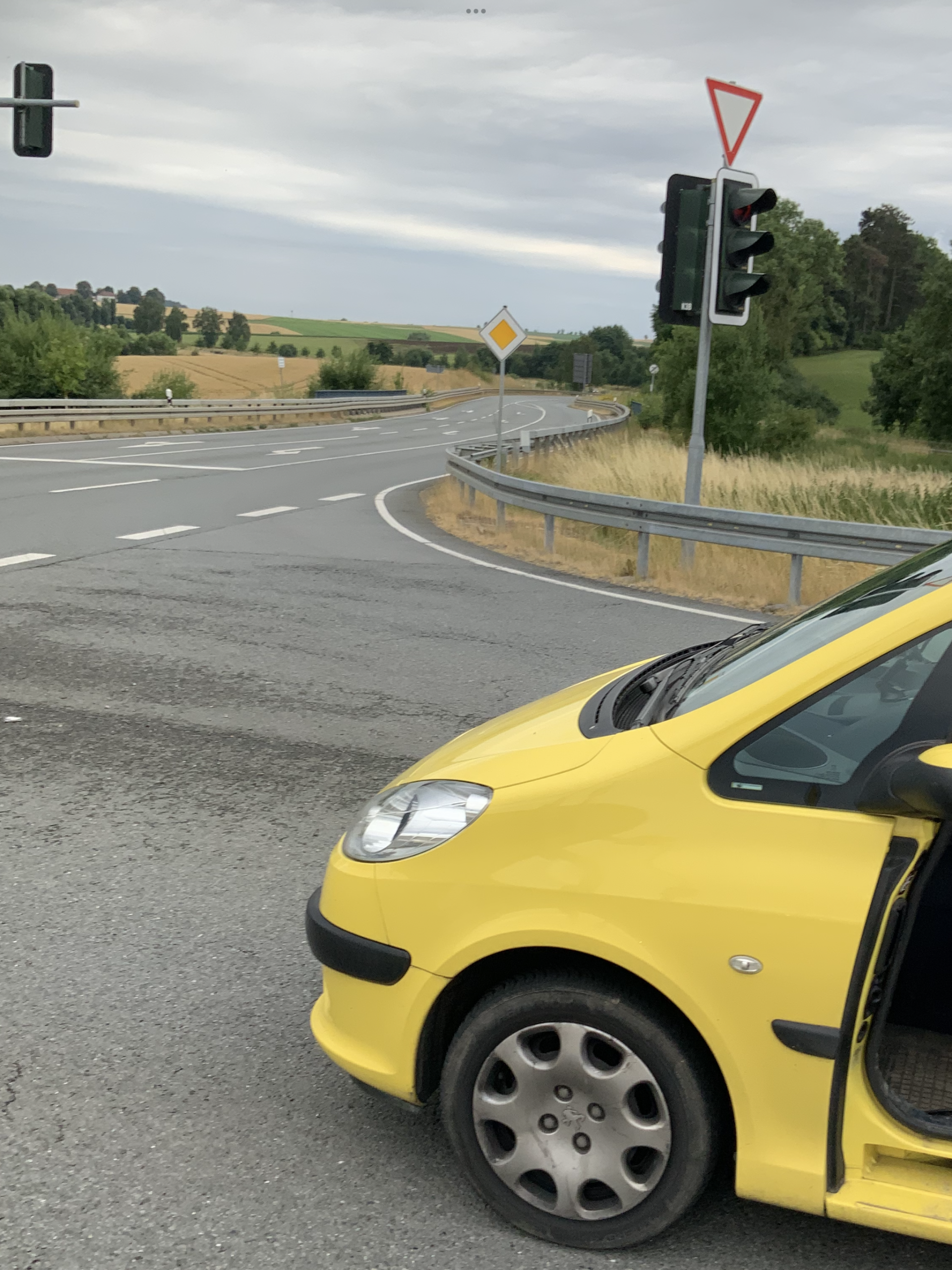 Die Fahrt ging weiter – und eine gute Stunde lang schien tatsächlich alles überstanden. Etwa eine halbe Stunde vor Zuhause, kurz vor Hofgeismar, meldete sich das Auto jedoch erneut. Diesmal fiel zuerst das ABS aus, dann der Blinker, die Scheibenwischer bewegten sich nur noch in Zeitlupe, und schließlich blieb das Auto mitten auf einer großen Kreuzung der Bundesstraße aus Kassel stehen. Der Akku des iPads war leer, mein Warndreieck lag noch bei der ersten Panne, und ich sprach mehrere fremde Menschen an, bis mir schließlich jemand sein Handy lieh. Mein Freund und meine Nachbarin kamen, sie hängte den Hänger bei sich an, und wir schoben das Auto zu dritt quer über die Kreuzung auf einen Feldweg. Dort blieb es über Nacht stehen und wir organisierten einen Abschleppdienst am nächsten Morgen. Unsere Nachbarin brachte uns nach Hause.