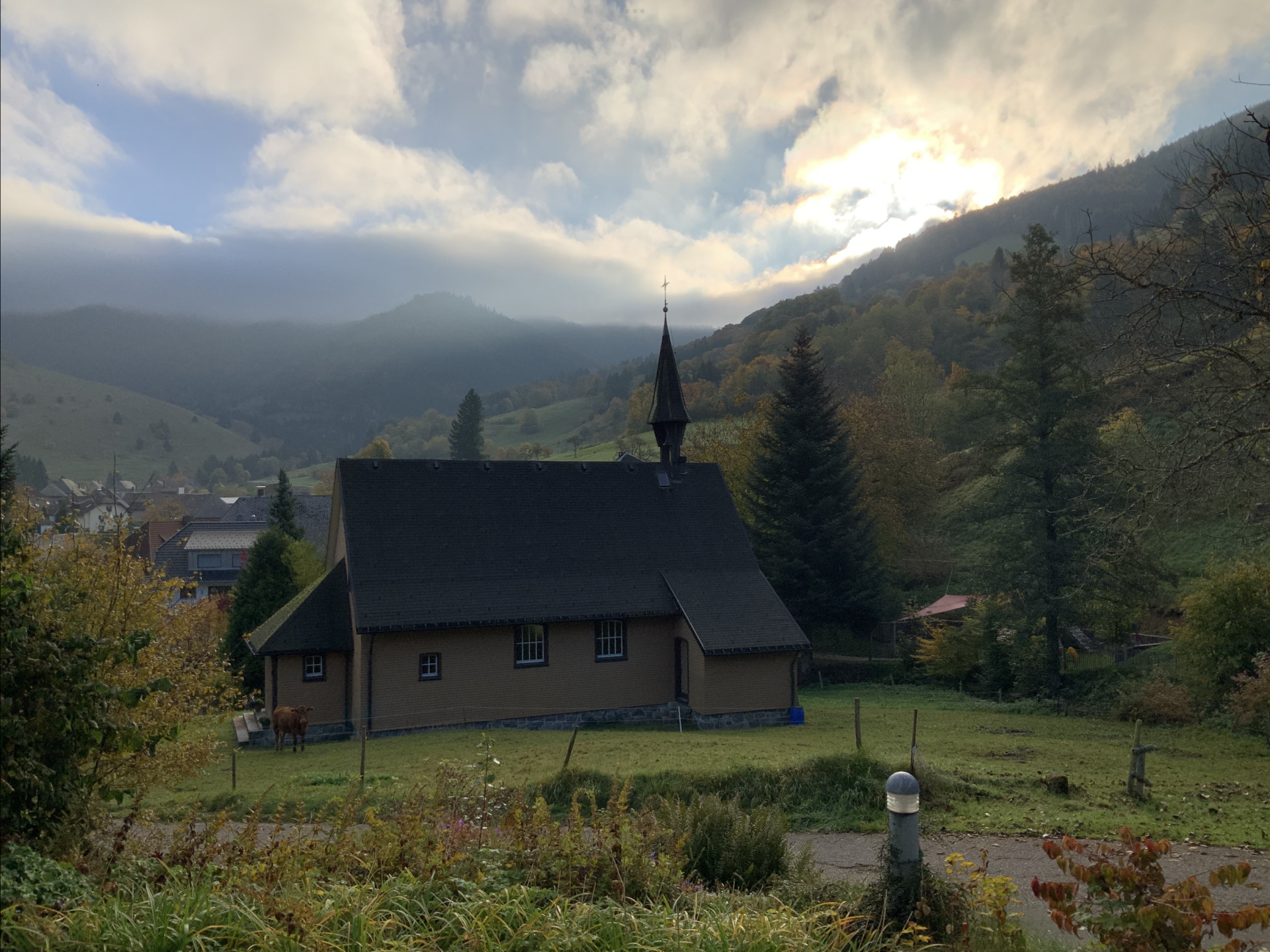 Wie sich herausstellte, hatte der Vorbesitzer des Bocks jedoch auch eine Ferienwohnung. Und genau in dem Zeitraum, in dem wir Seraphin und drei Auen abholen wollten, stand diese leer. Für drei Tage lohne sich eine Vermietung zwischen zwei Buchungen nicht, meinte er – zu viel Reinigungsaufwand. So wurde aus „wir holen Schafe ab“ völlig unverhofft ein kleiner Kurzurlaub. Ich war noch nie im Schwarzwald und rechnete mit einem kalten, grauen, nassen Herbstwochenende. Stattdessen – als wäre es genau so gedacht gewesen – erwischten wir eines der sonnigsten und schönsten Wochenenden des Monats. Wir konnten den Abend der Ankunft, den ganzen nächsten Tag und den Morgen der Abreise mitten im bunten, herbstlichen Schwarzwald verbringen. Wir machen sonst nie Urlaub wegen der Tiere. Das war unser erster längerer Ausflug seit etwa zehn Jahren. Und er war… richtig gut.